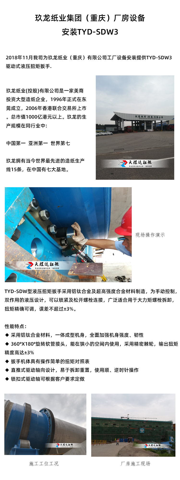 Plant equipment installation of Meilong Paper Group (Chongqing) TYD-SDW3