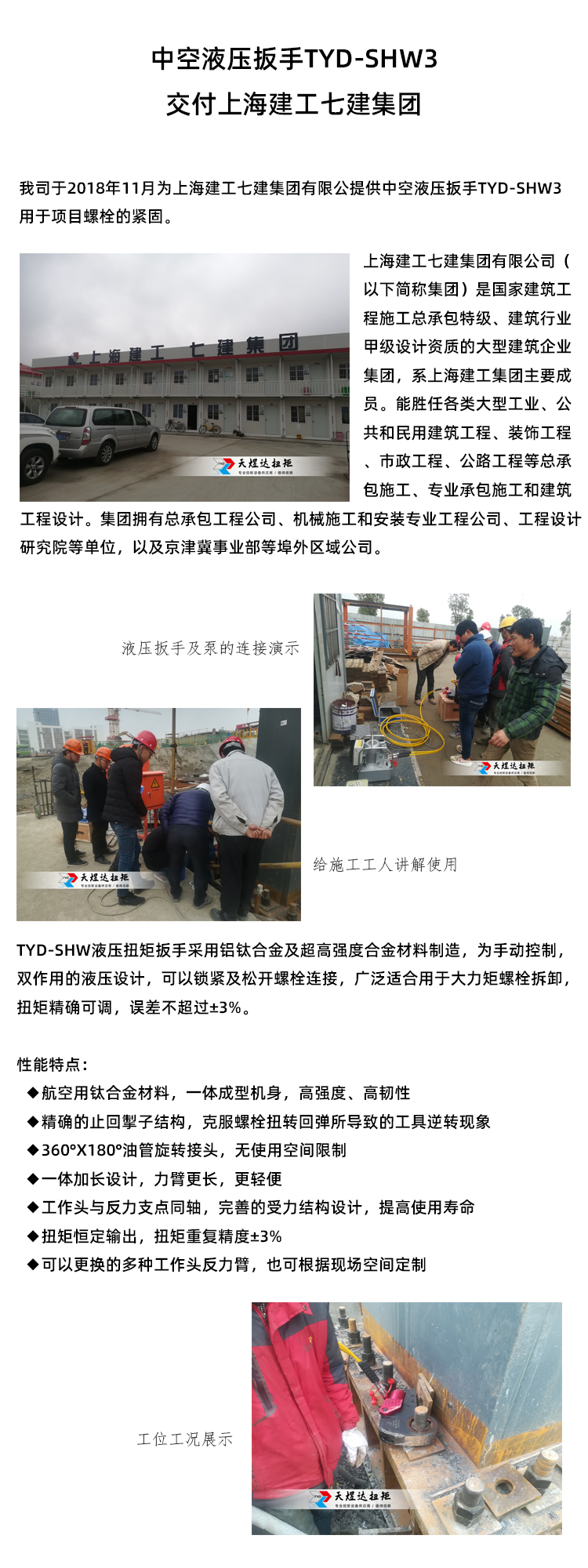 Hollow hydraulic wrench delivered to Shanghai Seventh Construction Grou