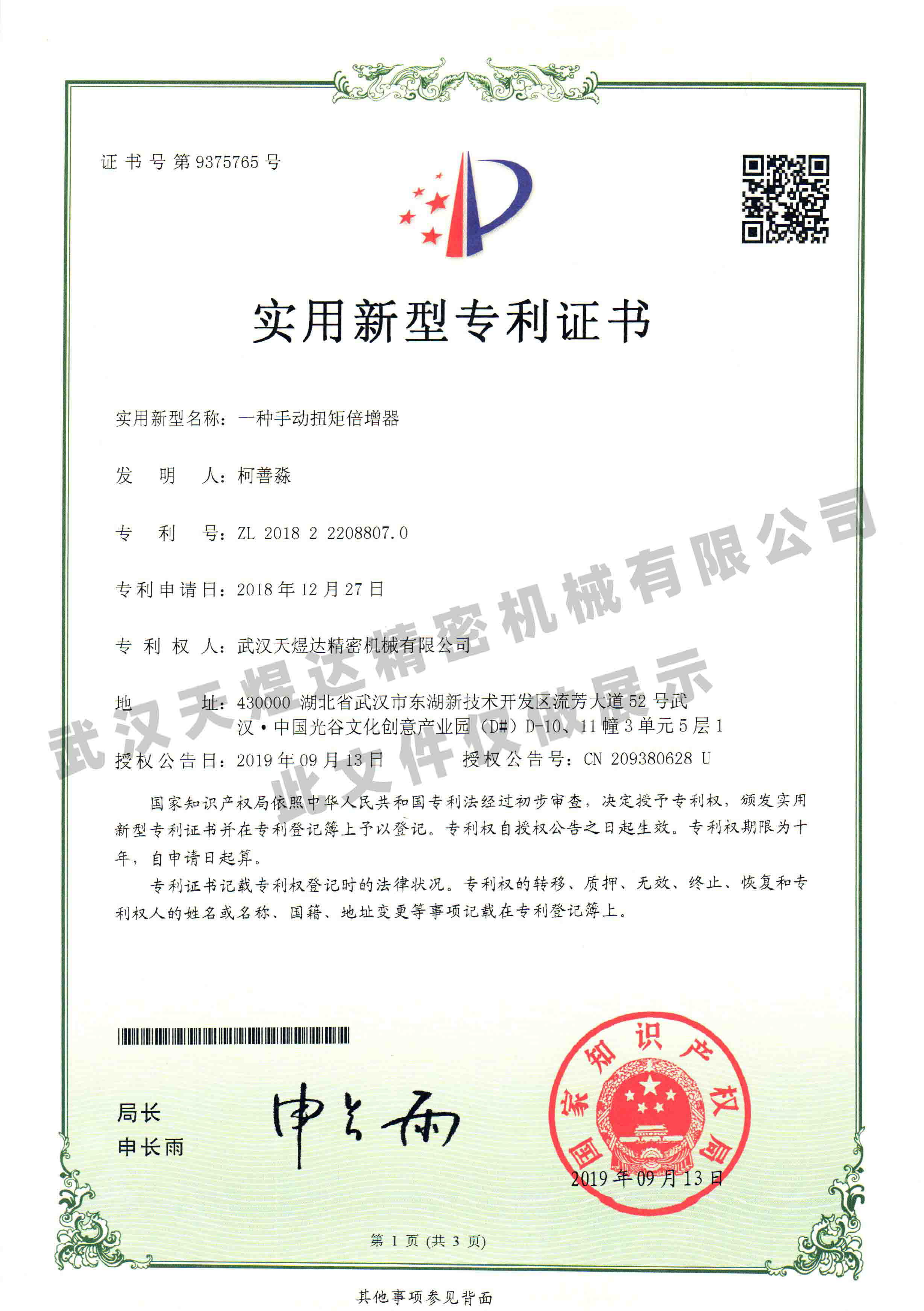 Manual torque multiplier patent