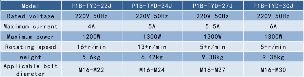 P1B-TYD series torsion shear electric wrench is an indispensable tool for torsion shear torx head bolt tightening operations. It helps you to install and remove bolts and nuts, and at the same time can more accurately control the tightening torque. Use the bolt to set the torque. When the wrench reaches a certain torque, the torx part of the bolt can be cut. The torque accuracy and axial tension are guaranteed by the fixed torque V-shaped notch of the bolt. The disassembly and assembly torque is large, and it is safer and more reliable than manual. Convenient, beautiful, practical, and easy to carry with the car. Widely used in the construction of steel structure bridges, workshops, power generation equipment and other